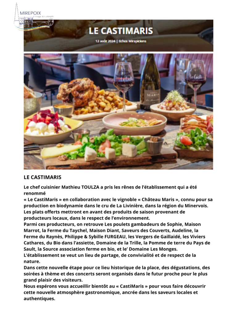 Lien de l’article : https://www.mairie-mirepoix.fr/2024/08/12/le-castimaris/